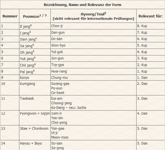 4) Vollständiger Name dieser Formen ist je nach Formenschule '<Formenschule> <Nummer> Jang' z.B. 'Taeguk Pal Jang' oder 'Palgue Sa Jang'