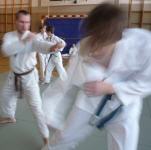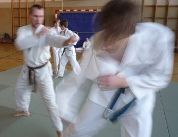 - Angriffe gegeneinander, Bruchtests, Übungen mit Waffen (zum Beispiel bei der Selbstverteidigung) oder andere schwierige Übungen dürfen nur nach ausdrücklicher Genehmigung des Lehrers unter dessen Beobachtung durchgeführt werden. Ansonsten ist die Verletzungsgefahr zu groß.